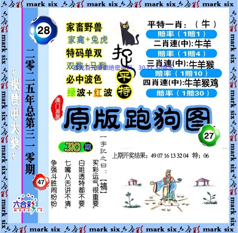 308期:平特【牛】二连【牛狗】三连【牛狗猪】